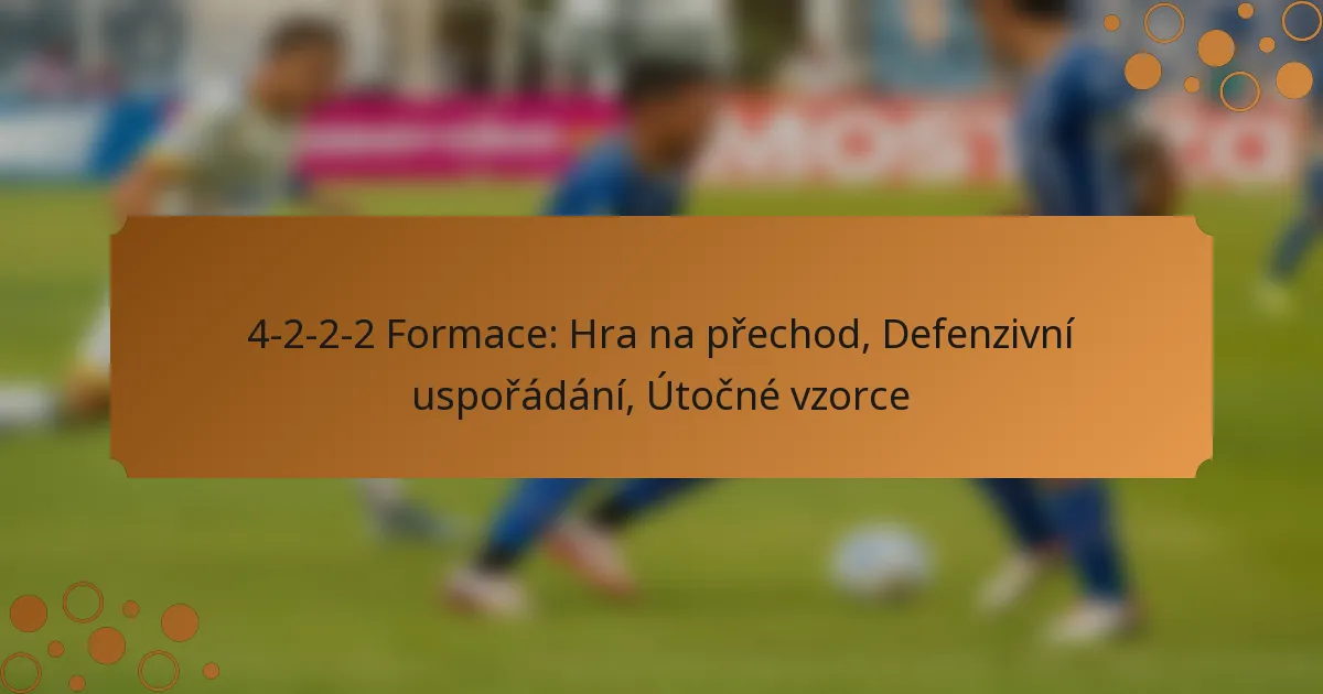 Útočné vzory ve formaci 4-2-2-2 zdůrazňují rychlé přechody, poziční spolupráci a využívání prostor. Toto uspořádání umožňuje týmům vytvářet přetížení v útoku, zatímco udržují šířku a hloubku, což usnadňuje efektivní pohyb míče a kombinace hráčů.