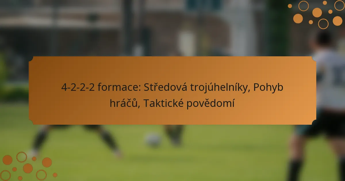 Formace 4-2-2-2 je strategický přístup ve fotbale, který vyvažuje defenzivní solidnost s útočným potenciálem, zahrnující čtyři obránce a dvě dvojice záložníků a útočníků. Centrálním prvkem této sestavy jsou záložnické trojúhelníky, které zvyšují možnosti přihrávky a podporují pohyb hráčů, čímž podporují taktické povědomí a kontrolu nad hrou. Tato formace umožňuje týmům rychle přecházet mezi obranou a útokem, což z ní činí univerzální volbu na hřišti.