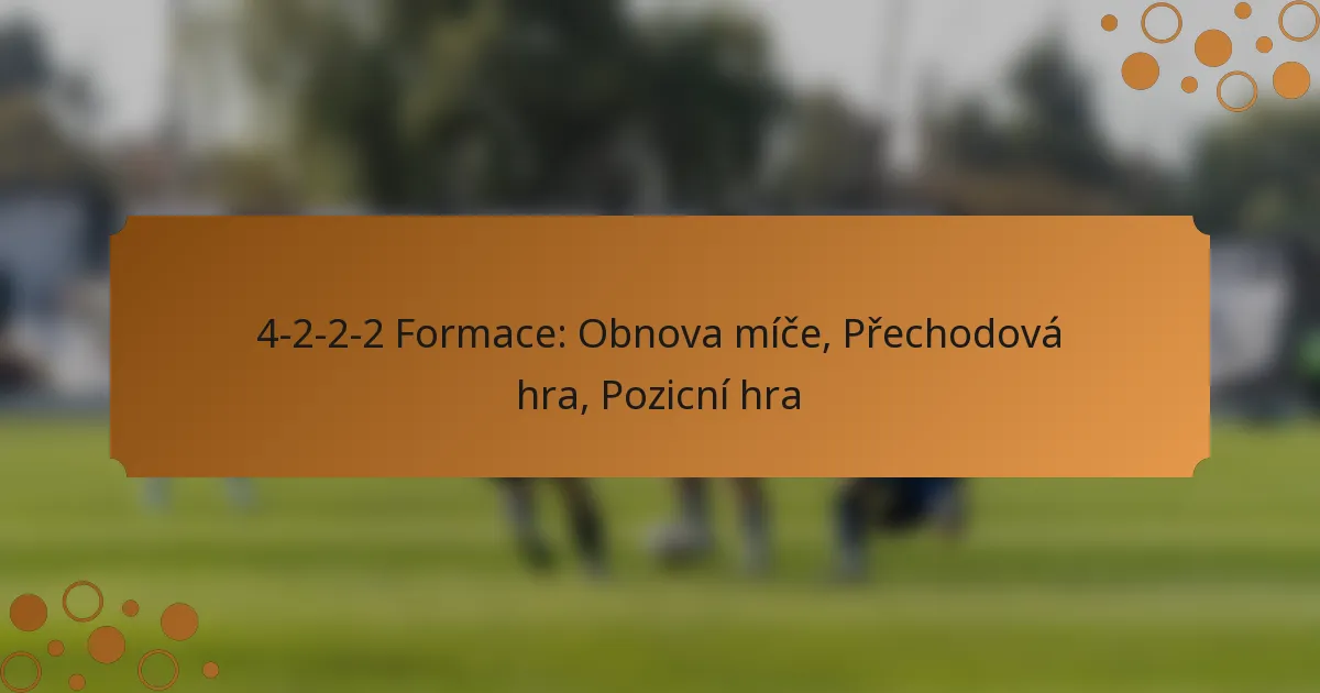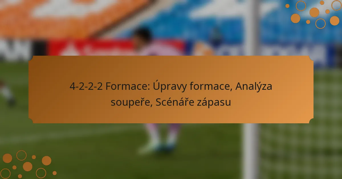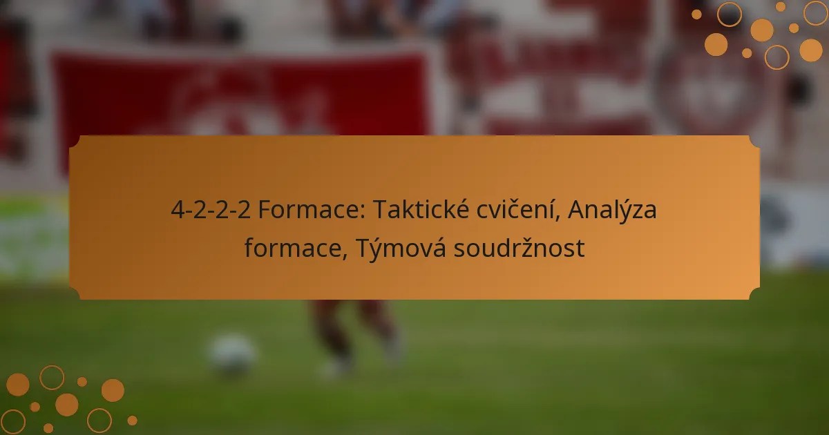 Formace 4-2-2-2 je strategické uspořádání ve fotbale, které kombinuje obrannou pevnost s útočnou variabilitou, zahrnující čtyři obránce, dva střední záložníky, dva ofenzivní záložníky a dva útočníky. Aby bylo možné tuto formaci plně využít, jsou taktické cvičení klíčová pro zlepšení postavení hráčů a podporu týmové soudržnosti, což nakonec zvyšuje celkový výkon. I když poskytuje vyvážený přístup k ovládání středu hřiště a útočným příležitostem, týmy si musí být také vědomy jejích obranných slabin, aby optimalizovaly svou hru.
