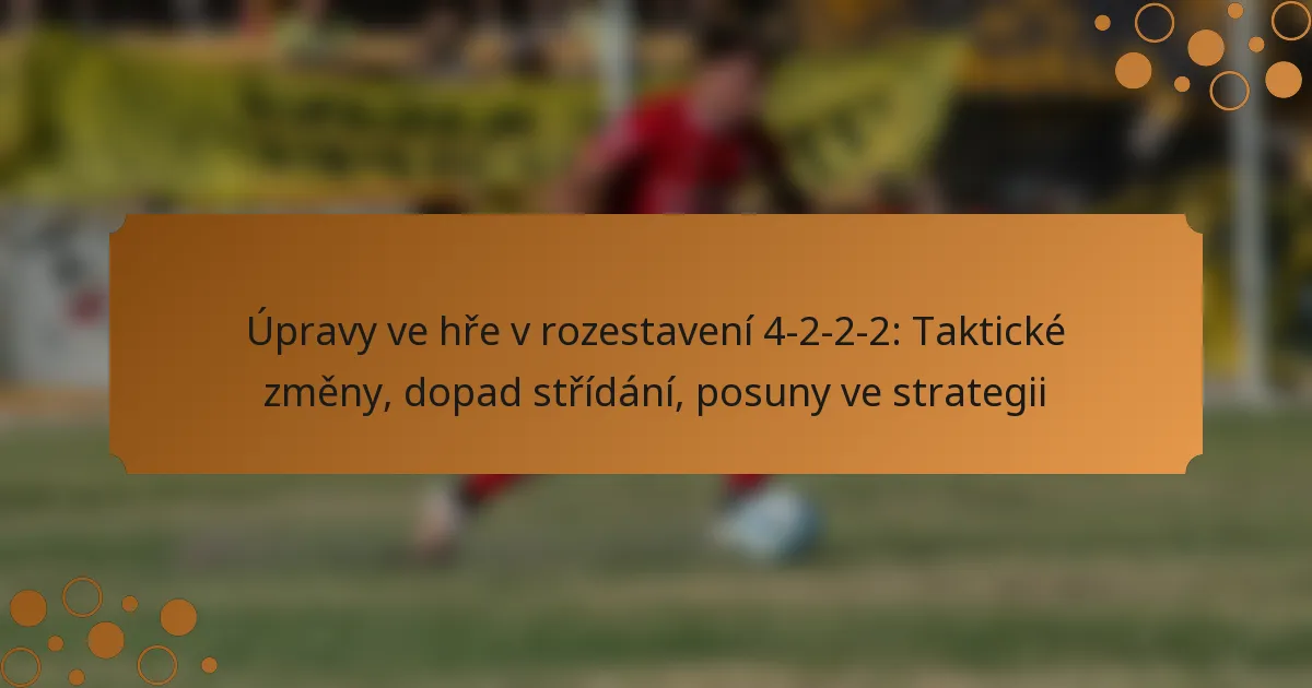 Formace 4-2-2-2 umožňuje dynamické taktické úpravy, které zvyšují jak defenzivní stabilitu, tak ofenzivní tlak. Klíčové změny často zahrnují přesouvání hráčů, změnu rolí záložníků, úpravu šířky a implementaci pressingových strategií, aby se přizpůsobily průběhu hry.